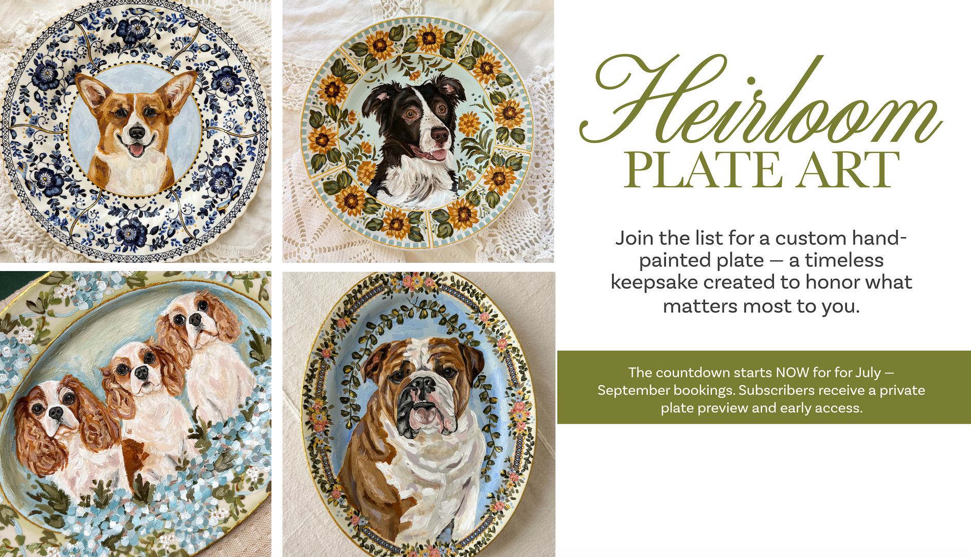 Be the first to know about new arrivals, commission openings, sales, and special events.