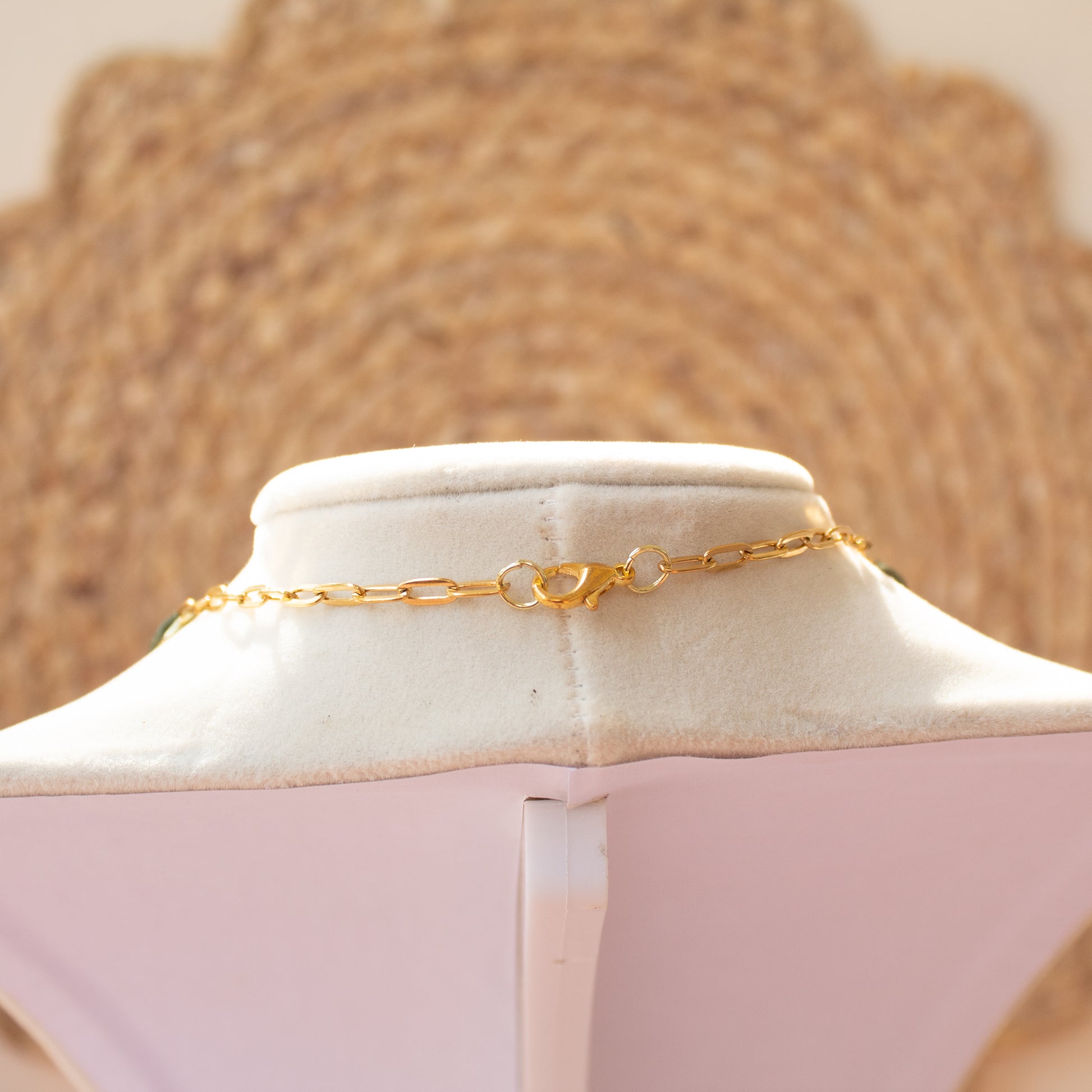 *Bandana: Handcrafted with fabric and 18k gold plated chain to clasp in the back. Enter your length in options (16" or 20")