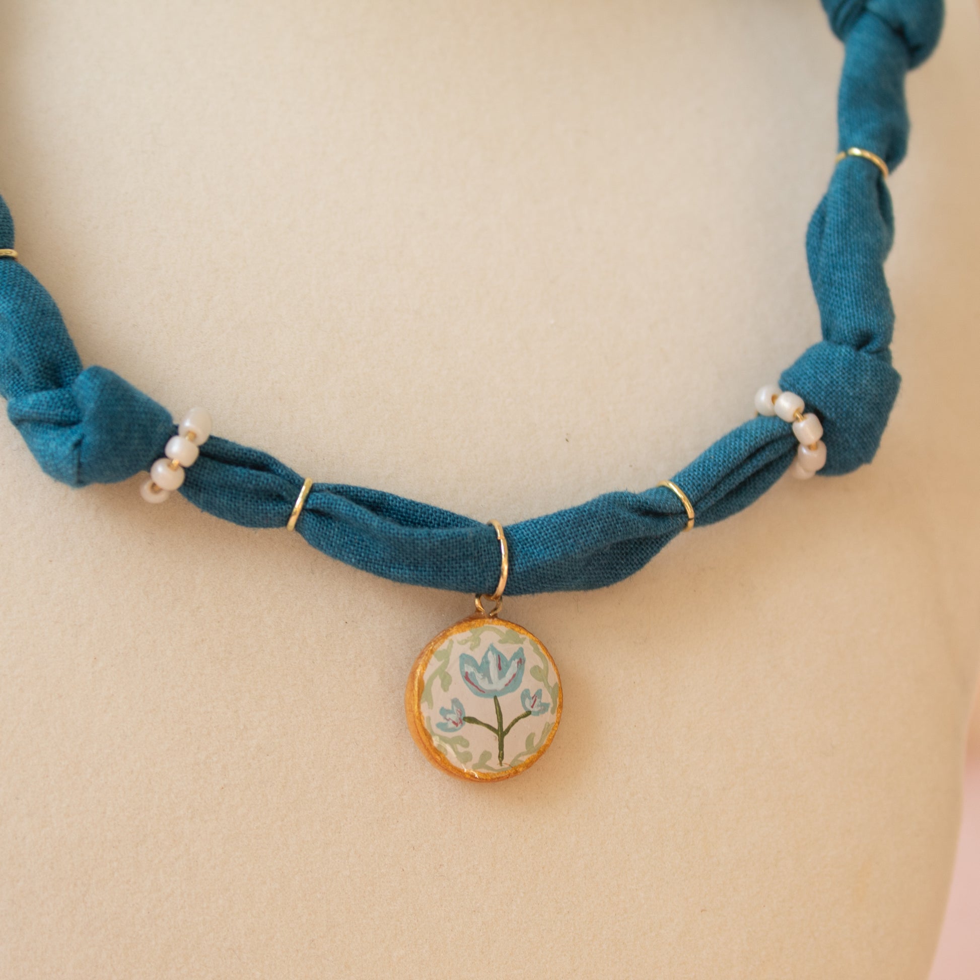 Teal Floral Bandana Necklace